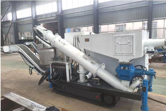 分離機具有結構合理緊湊,操作簡(jiǎn)單,板鏈輸送機可180°扇面自由定位旋轉、鏈速0-500mm/s可調,螺旋脫水輸送機0-100r/min可調、脫水效果好,具有液壓履帶行走功能,因此該裝備移動(dòng)方便。